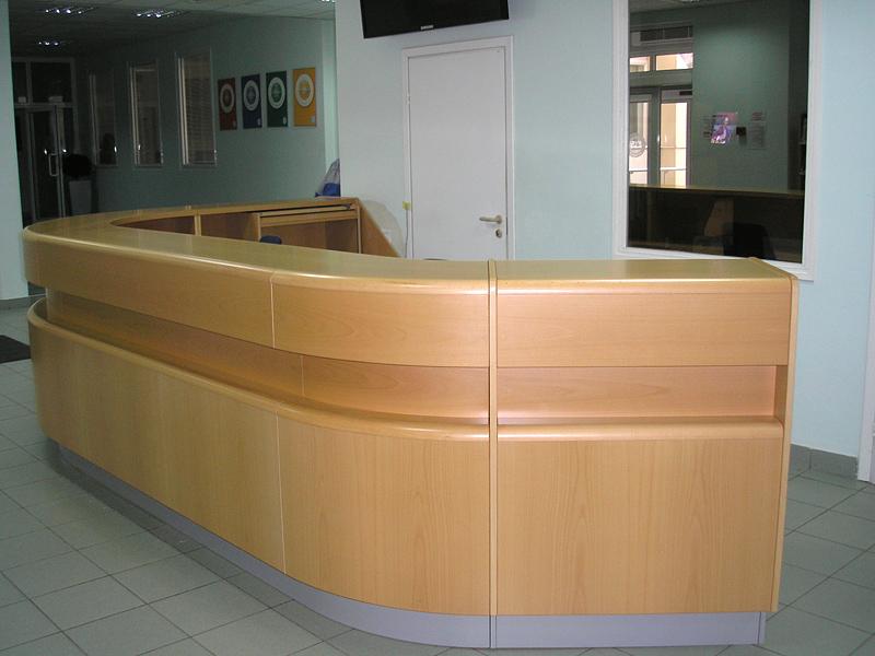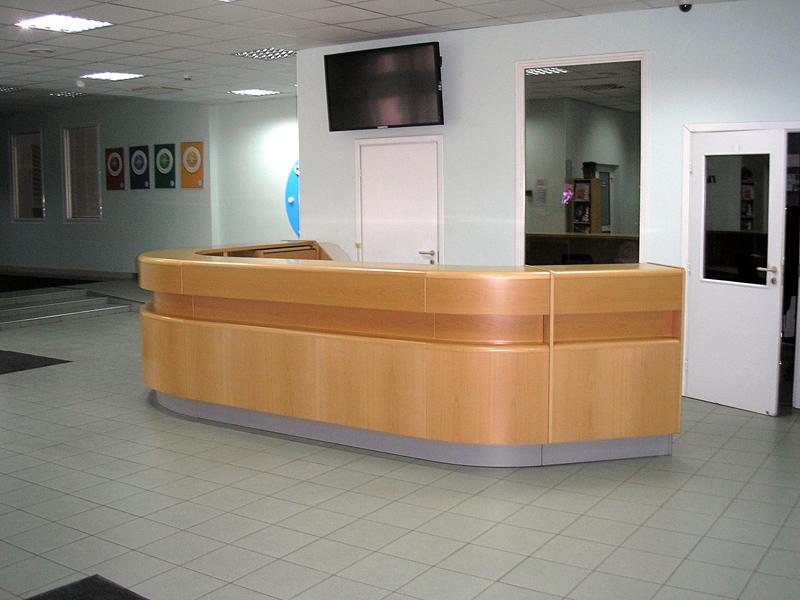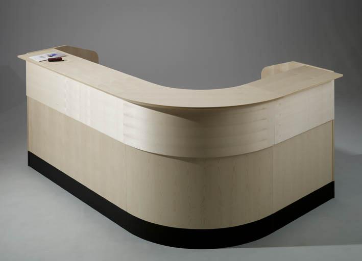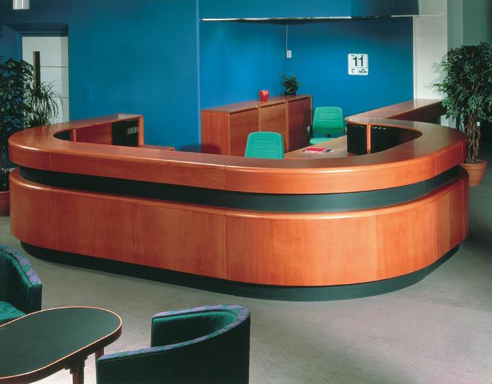 Стойки приёмной Team Reception могут иметь декоративную полосу из шпона, ламината различных цветов,  металла, а также ламинированный или металлический цоколь.